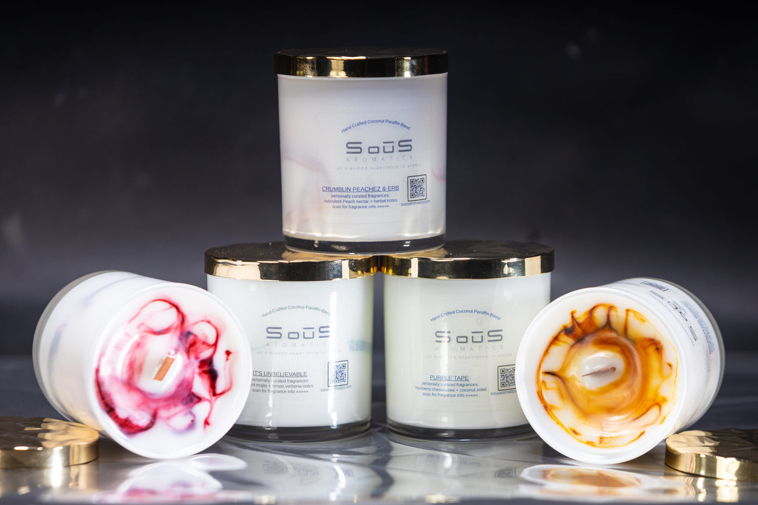 Sous Aromatics was founded on the principles of creativity, artistic direction, and a refreshing approach to aromatherapy, which stimulates the senses through our luxury line of personally curated fragrant combinations. We specialize in artistically inspired luxury candles, ranging from 4 ounce travel tins to 10 ounce custom vessels. Our rollout aromatics are available as a collection mashup of Hip-Hop and Culinary Arts. True distinction is in the ability to recognize art on a whole different level. As my friends in the culinary world like to say, “It’s time to elevate!”